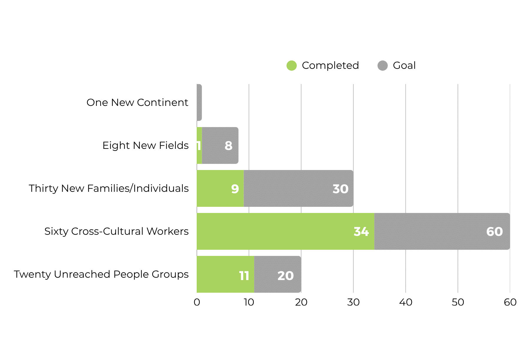 Building on the success of the last ten-year ministry plan, Vision 2033 is the blueprint for realizing our vision of what GMI will look like by 2033. We are not content with preserving what we have; we want to grow and extend our reach so the gospel is preached, churches are planted, leaders are equipped, and communities are transformed in even more areas worldwide. The following are the four primary goals for Vision 2033.